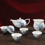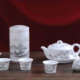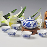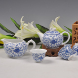 景德镇茶具的品种花色很多,其中尤以青花瓷茶具最引人注目。青花瓷茶具,其实是指以氧化钴为呈色剂,在瓷胎上直接描绘图案纹饰,再涂上一层透明釉,尔后在窑内经1300℃左右高温还原烧制而成的器具。然而,对“青花”色泽中“青”的理解,古今亦有所不同。古人将黑、蓝、青、绿等诸色统称为“青”,故“青花”的含义比今人要广。它的特点是:花纹蓝白相映成趣,有赏心悦目之感;色彩淡雅幽菁可人,有华而不艳之力。加之彩料之上涂釉,显得滋润明亮,更平添了青花茶具的魅力。 饮茶离不开陶瓷茶具,茶具是指泡饮茶叶的专门器具,包括壶,碗,杯,盘,托等,古人讲究饮茶之道的另一个重要表现,是非常注重陶瓷茶具的本身的艺术,一套精致的茶具配合色,香,味三绝的名茶,可谓相得益彰。随着饮茶之风的兴盛以及各个时代饮茶风俗的演变,茶具的品种越来越多。 我公司生产的景德镇陶瓷茶具造型优美、品种繁多、装饰丰富、风格独特。瓷质"白如玉、明如镜、薄如纸、声如磬"。有手绘青花、粉彩、玲珑、颜色釉各种样式。还可以根据您的需要印制您需要的各种图片、添加公司LOGO图形和文字等。供各类陶瓷工艺品、陶瓷纪念品、陶瓷礼品的设计加工和来样定做!!!