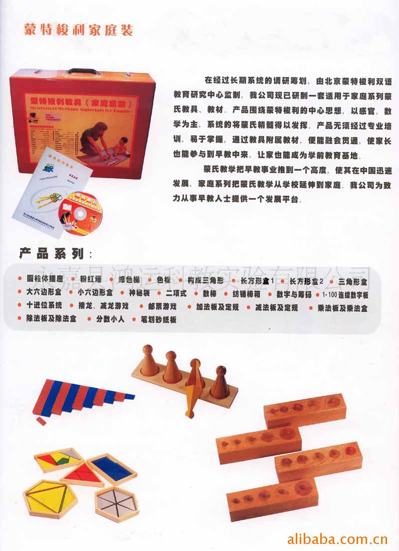 说明:20种可独立产品!带光碟、使用说明书一本是所有父母不再发愁的科学的一套完整的早教教具。概括了蒙特梭利五大系统的精华!