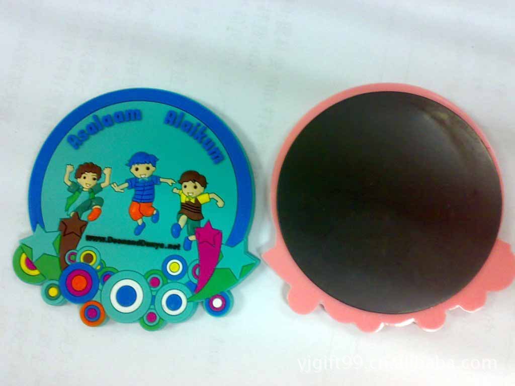 PVC软胶+磁铁。可贴于任何铁质器具外表,色彩丰富,使用寿命长,移动方便,自由组合,避免了粘贴胶质遗留痕迹的问题,可贴于车内,冰箱,微波炉,电脑机箱等等,使用范围广,是商务促销最佳选择。一般用于家庭,酒店,礼品店等。