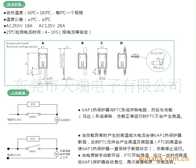 6AP1是一款具有过流、感温双重保护功能的保护元件,它能够控制电机堵转或电流过量对电机的损伤。 6AP1+PTC手动复位热保护器是本公司在越来越多的客户需求非自动复位的马达保护装置下研究开发的,它确保了设备更高级别的安全性。