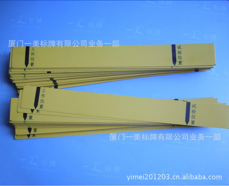 回答:用于比较广泛,常用于机器设备上的高压标识牌,说明指示牌,机器设备牌,及按钮标示牌,室内的一些标识牌,家用电器、仪器仪表、机械、电子的开关面板标贴牌等……