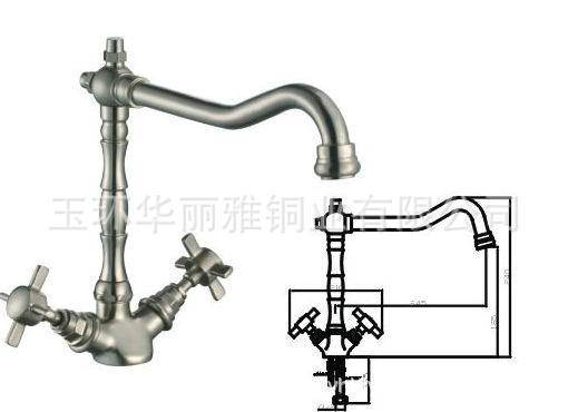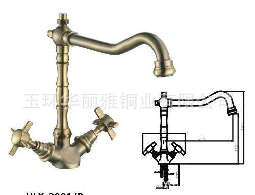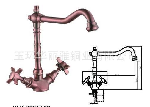 铜体,锌合金手轮,铜出水管,重量1450克,此款厨房龙头本工司提供镀铬(HLY-2001C),镀表古铜(HLY-2001B),镀红古铜(HLY-2001RB)和镀白古铜(HLY-2001VE)四色,品质优良,欢迎广大客户联系洽谈