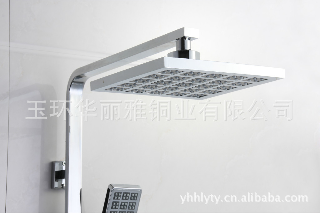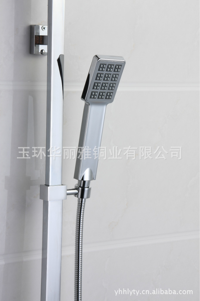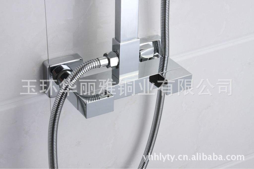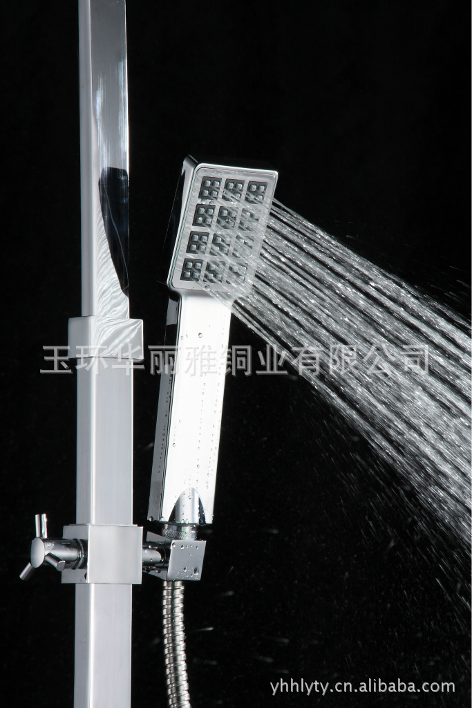 方型双把淋浴柱龙头,铜体铜管,塑料顶喷,塑料花洒,1.5米双扣淋浴软管,尺寸如图