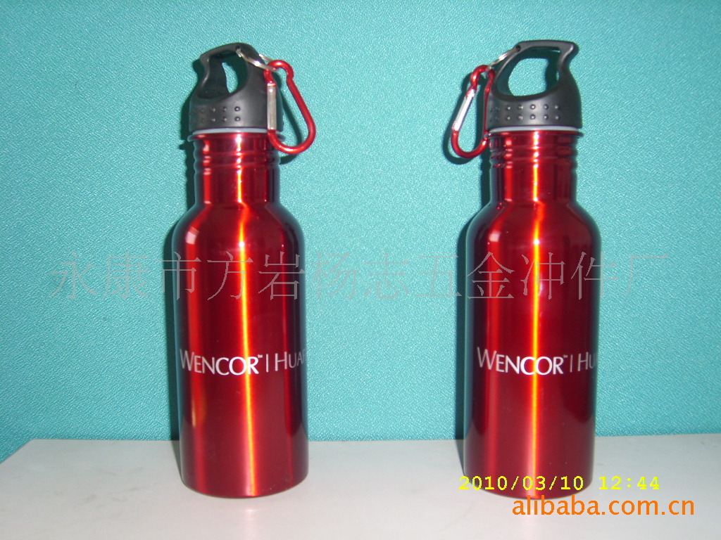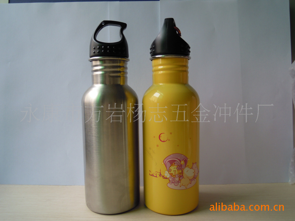 500ML运动水壶,口径为3。5CM,方便放冰块、同时也比较方便清洗,盖子更加结实耐用,还可配上各种时尚的水壶扣,本产品采用食品级(环氧树脂)无毒涂层及纯铝制成,坚固耐用、安全防漏、携带方便。容量300-1000可供您自由选择,且杯身的颜色及花案都可由您自己提供和选择(本公司现在的热转印和漆染印图案新颖,款式上百余种,可供您选择),同时也可印制公司的商标广告等,时尚且达到广告宣传的效果。