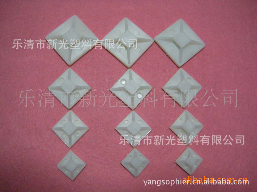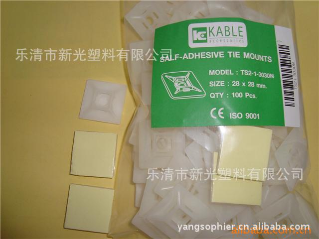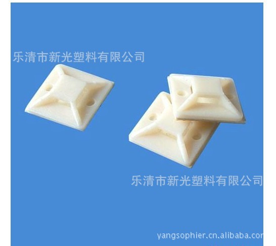 材质:UL合格之NYLON66,防火等级94V-2.特点:粘贴式设计,可省去面板鑽孔之麻烦。束线简易、牢固、并可松开,多次重复使用。粘式固定座、粘式配线固定座、扎带固定座材质:UL合格之NYLON66(本色、黑色),防火等级94V-2。用途:背胶式或上螺丝,固定电线,整齐美观。