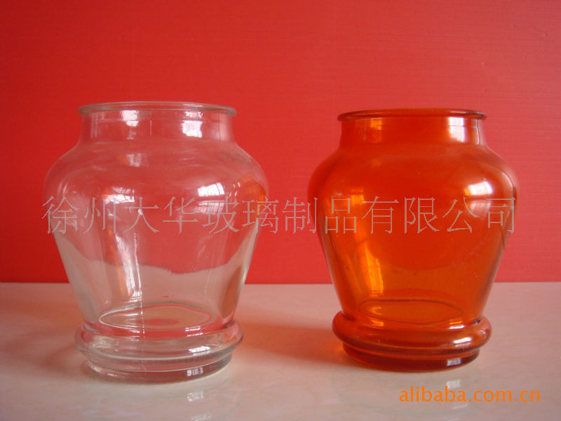 徐州大华玻璃制品有限公司.按国家轻工部及企业标准生产质量保证!公司被评为“徐州市先进企业”、“江苏省明星企业”、“AAA级信用企业”、“全国大二型乡镇企业”、百家最佳经济效益企业”、“重合同守信用企业”,公司玻璃制品主要有,玻璃瓶,玻璃罐,调味瓶,蜡烛台,蜡烛杯,罐头瓶、饮料瓶、果醋饮瓶,蜂蜜瓶,橄榄油瓶,咖啡瓶,酒瓶,果酒瓶,保健酒瓶,葡萄酒瓶,酒坛.果汁瓶,腐乳瓶,果酱瓶,酱醋瓶,麻油瓶,密封罐,,保健瓶,医药瓶,胡椒粉瓶,烤花瓶,蒙砂瓶,香水瓶.化妆品瓶,奶瓶,口服液瓶,燕窝瓶,墨水瓶,枇杷膏瓶,金银花露瓶,菌苗组瓶,输液瓶,等一百多个系列900多个品种,并能为客户来样烤花、刻字等深加工。公司拥有瓶盖厂,有全自动注塑机,生产各种规格型号的马口铁瓶盖及塑料瓶盖,主要有:38#、43#、53#、58#、63#、70#、82#。和实力雄厚的模具生产车间,可以在最短的时间内为客户定制,高质量,高标准的模具。新产品开发10-15天出产品。并可代办拖运(汽车、零担 ……
