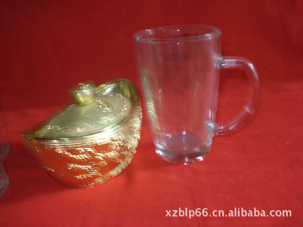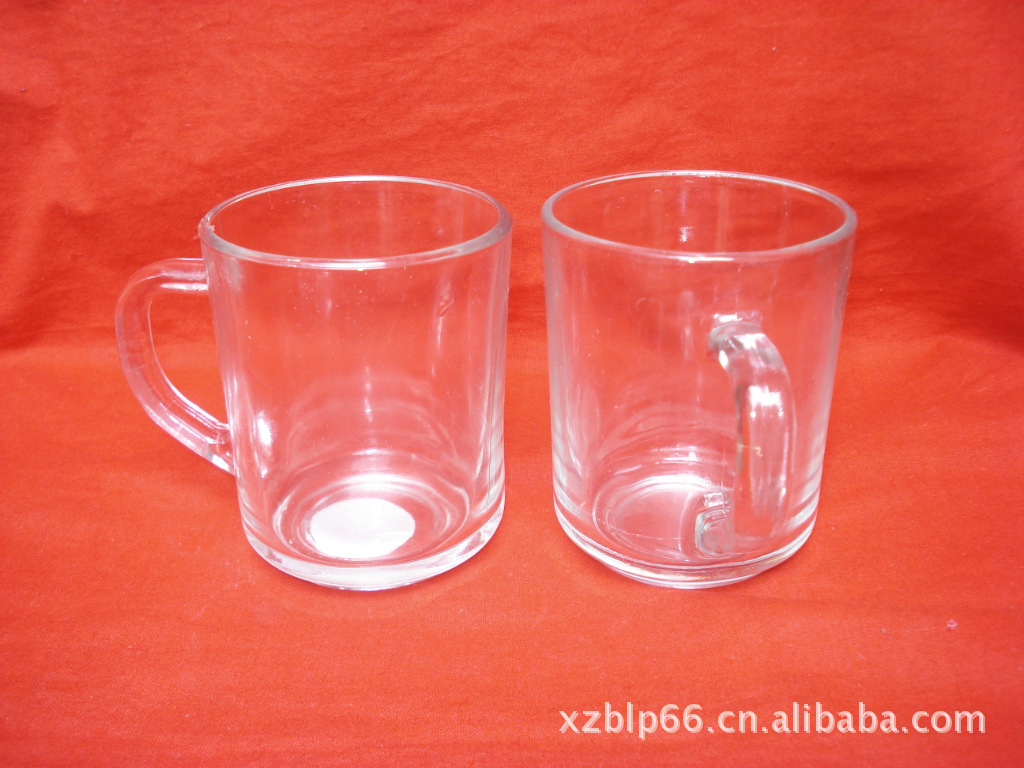 厂家供应各种优质高档玻璃口杯 把子杯可蒙砂烤花等