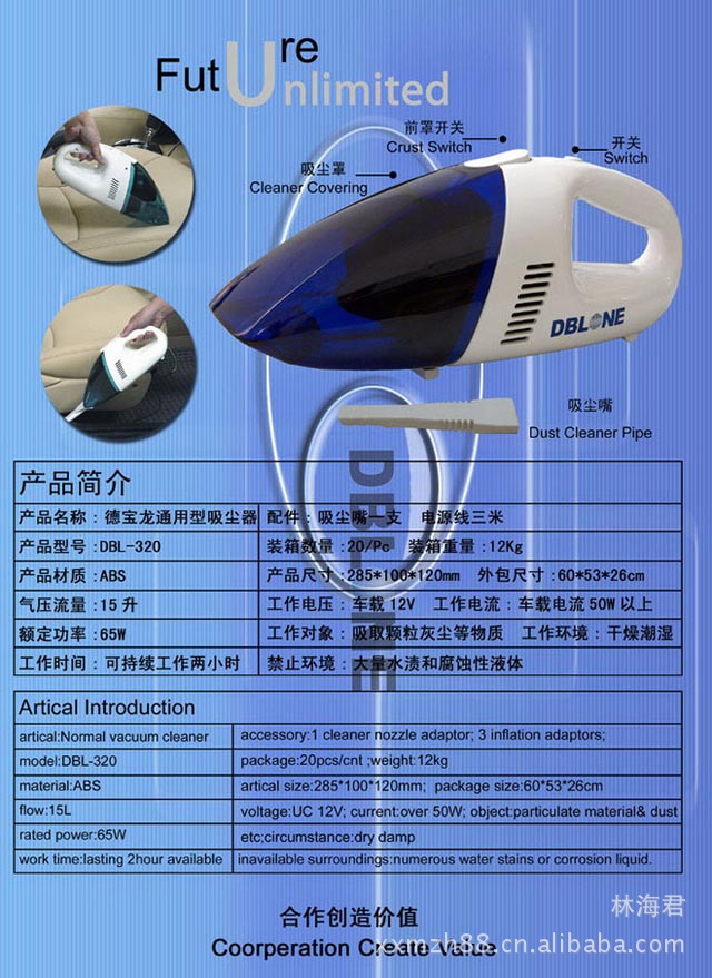 正品德宝龙汽车吸尘器 车载迷你吸尘器 干湿两用吸尘器 DBL-320