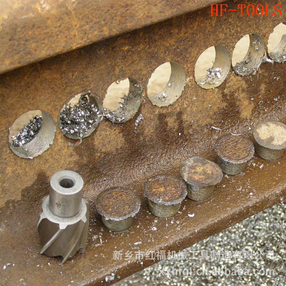 当你需要在钢轨、桥梁、舰船、钢板上钻孔,而受到动力、设备和环境的限制时,请选用空心钻头。空心钻是我单位为铁路抢修和正常施工 而设计制造的系列专用工具,材质分高速工具钢和硬质合金两大类,规格在φ20-φ50mm之间。 空心钻安装在专用钻孔机上可用于铁路的抢修钻孔,桥梁的施工钻孔;安装在通用机床上可用于钢材的中间取料化验和普通钻孔。其特点是体积小,重量轻,速度快,效率高,省功省力,节省能源,并可在斜面上钻孔,也可在钢材的边沿上钻半个孔,这些特点是普通麻花钻头绝对做不到的。空心钻头在一定的加工范围内具有很大的优势,是值得大力推广应用的换代产品。空心钻也可以按照用户的要求设计制造。