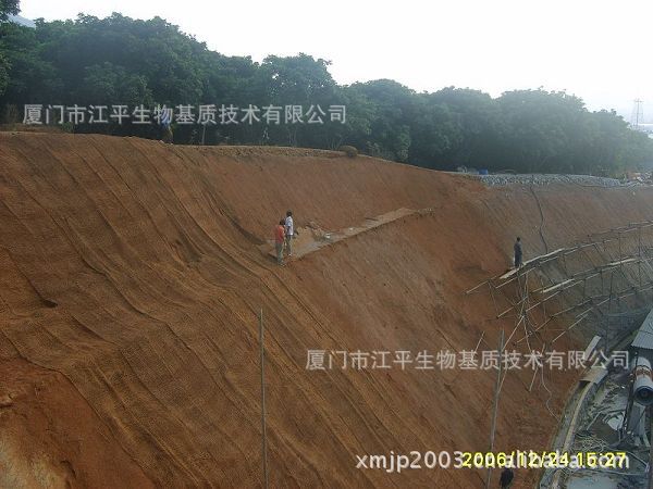 CF网又称椰子壳纤维网,用100%的椰子纤维做成的网状结构。椰子纤维是硬纤维和床垫纤维的混合体,含0.25%半纤维素酶、45%木质素、43%纤维素和4%胶质,有较低的伸长率和高抗拉强度;CF网有较高的耐腐蚀能力,一般生物降解时间约为3-5年。
