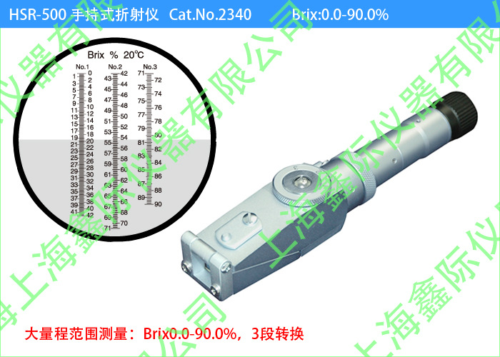Hand-Held Refractometer HSR-500The refractive index of a solution containing sugar is in proportion to its sugar concentration. The model 500 uses this principle, where a transmitting system is applied, to obtain a high contrast in the field of view.