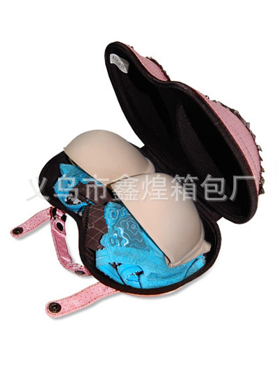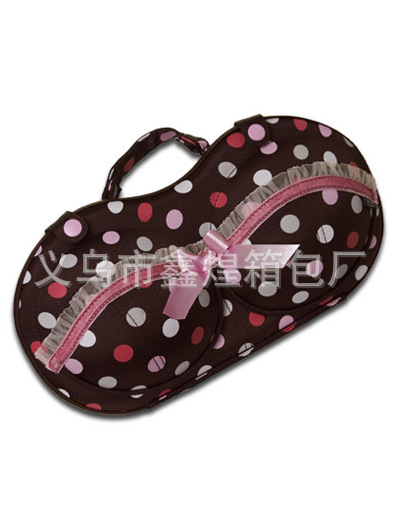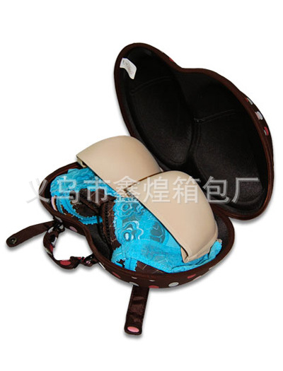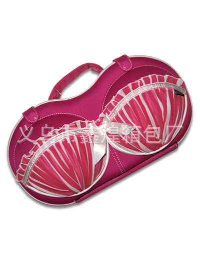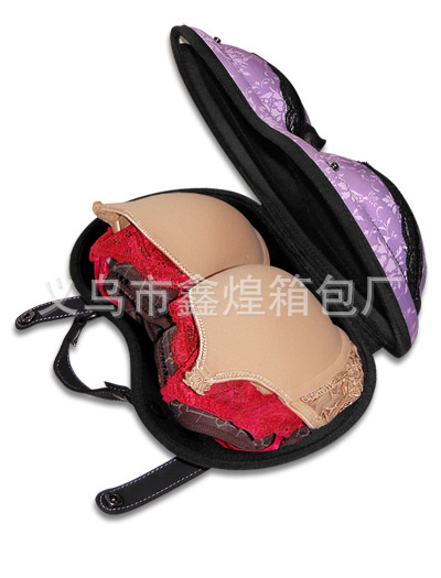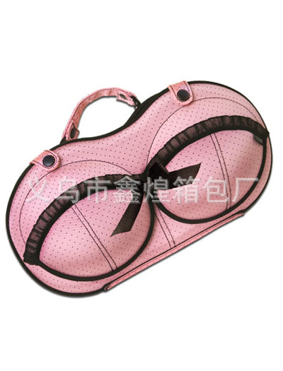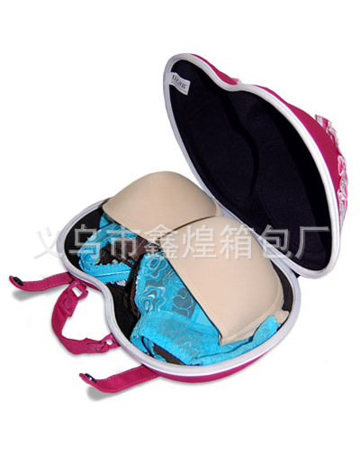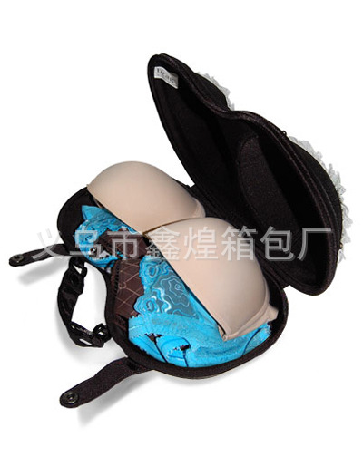 EVA文胸包、EVA时尚文胸包、EVA文胸收纳包、EVA内裤包 新奇特产品 时尚流行 防护本款EVA文胸包采用色丁布、牛津布或各类尼龙布、针织布为面料,主料为加硬EVA,经特殊工艺后定型,为您的物品提供完美的保护,具防水、防压、防损、耐磨等功能。 EVA文胸包的魅力: 1. 可以令您心爱的文胸不会因挤压而变形,拥有一个文胸包使得携带更加容易方便,保护隐私! 2. 超大尺寸设计,数量可多达10个;无论是家用、户外旅行,都是不错的选择,如果您常去健身房,更是不可多得的帮手! 3. 文胸包可加蕾丝花边、蝴蝶结等超炫的设计和时尚的外观,定会让您爱不释手,无论是自用,还是作为馈赠亲友,都会让爱美的女士格外欣赏!