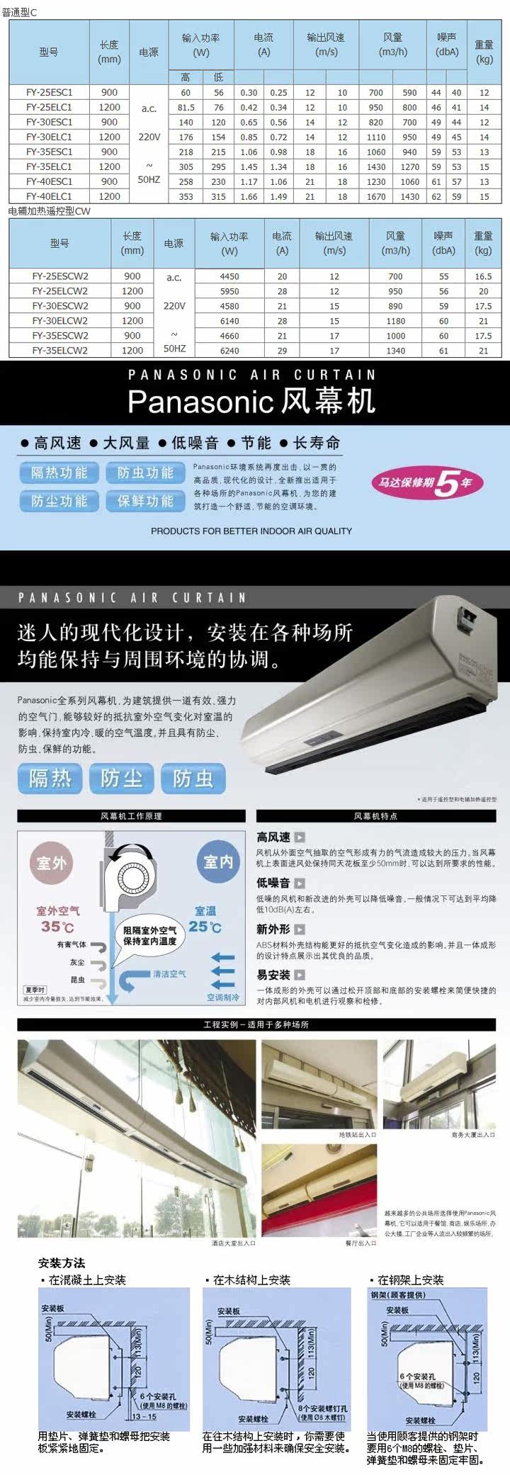松下正品风幕机/FY-25ELC1 长度:1.2米 吹风有效高度为:2.5米