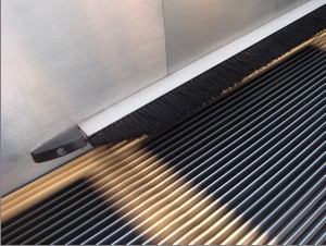 4、在过渡区段和水平区段,围裙板防夹装置的刚性部件最下缘与梯级表面最高位置的距离应在25mm和55mm之间;