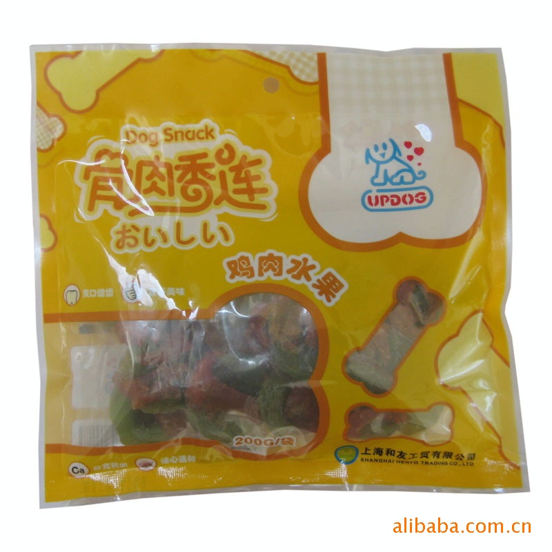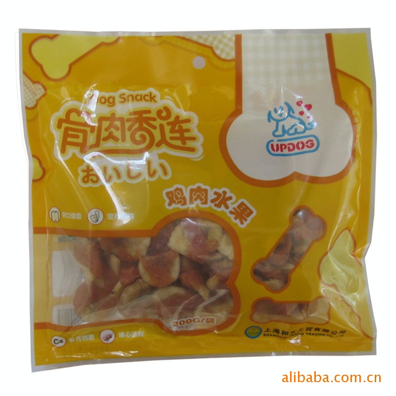 ●宝贝特点:优质鸡胸肉搭配蟹棒,海陆双鲜哦! 本品是以新鲜鸡肉为主要原料加工而成的宠物食品。 富含宠物生长所需的氨基酸,令宠物更加健康,活泼 本品为半生食品,能促进肠胃的正常消化吸收,避免爱犬生理退化 先进工艺确保低脂肪,低热量,防止肥胖 尤其适合增加食欲或在训练时做奖励品之用