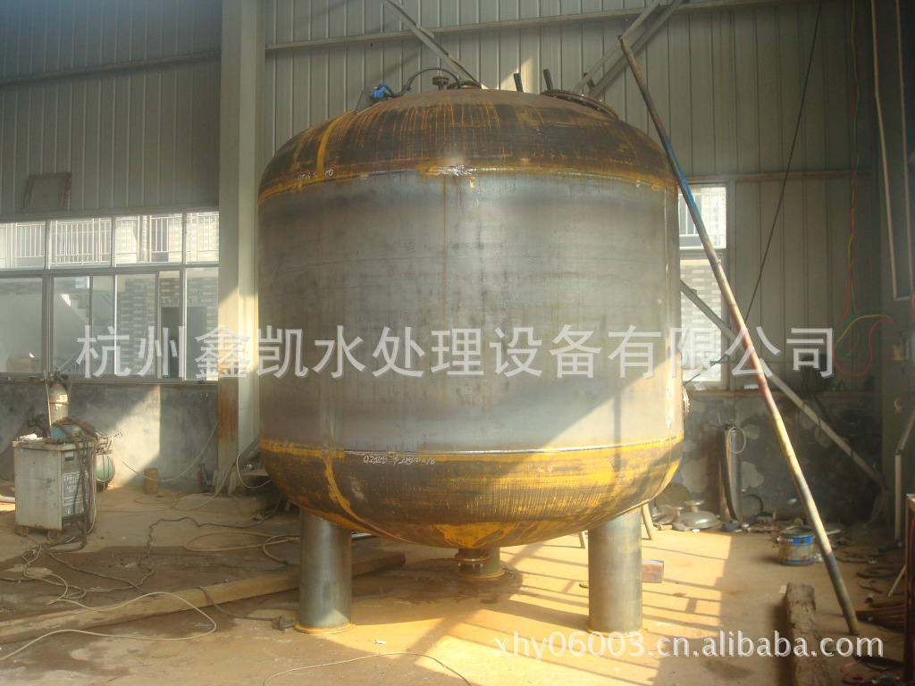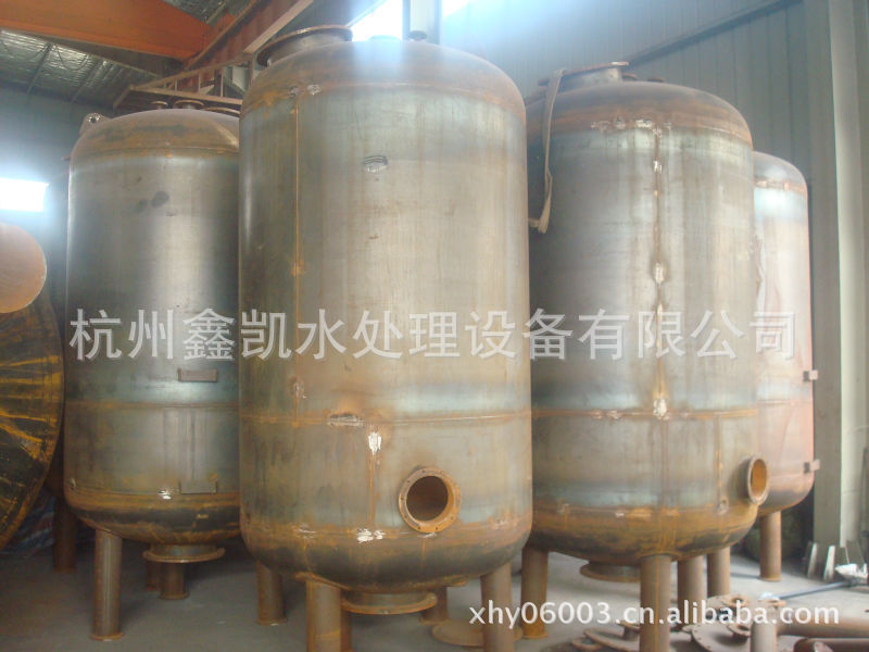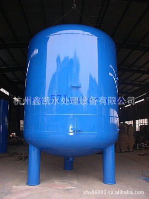 一般有碳钢或不锈钢304制作,内涂环氧树脂或内衬天然橡胶防腐,布水系统有吊篮布水,下有穹形板布水,不锈钢管式布水,平板布水,布水水帽有ABS蘑菇型和绕丝柱形布水,其中管式布水和,穹形板布水下有垫层,有大的鹅卵石或大的石英砂组成,这主要是他们空隙大,阻力下,便于收集水和反洗。
