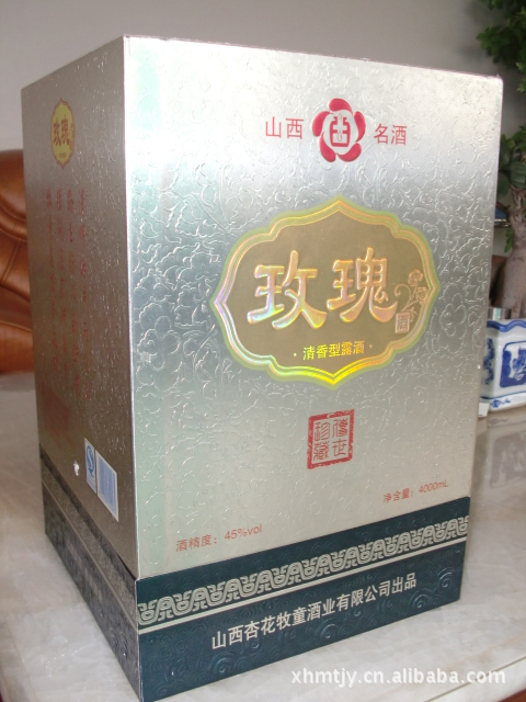 本产品内装原浆酒经发酵,蒸馏得到一级原浆酒