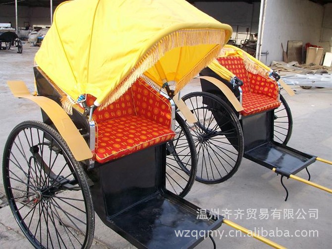 我公司新开发的无接缝黄包车轮,直径96CM,真正标准的黄包车轮胎。国内有84CM和有接缝用螺丝固定的黄包车轮,纯粹是在忽悠人,84CM的轮子太小,打螺丝的不能拉客,拉着当当响几天就掉下了,明摆着是骗人的!