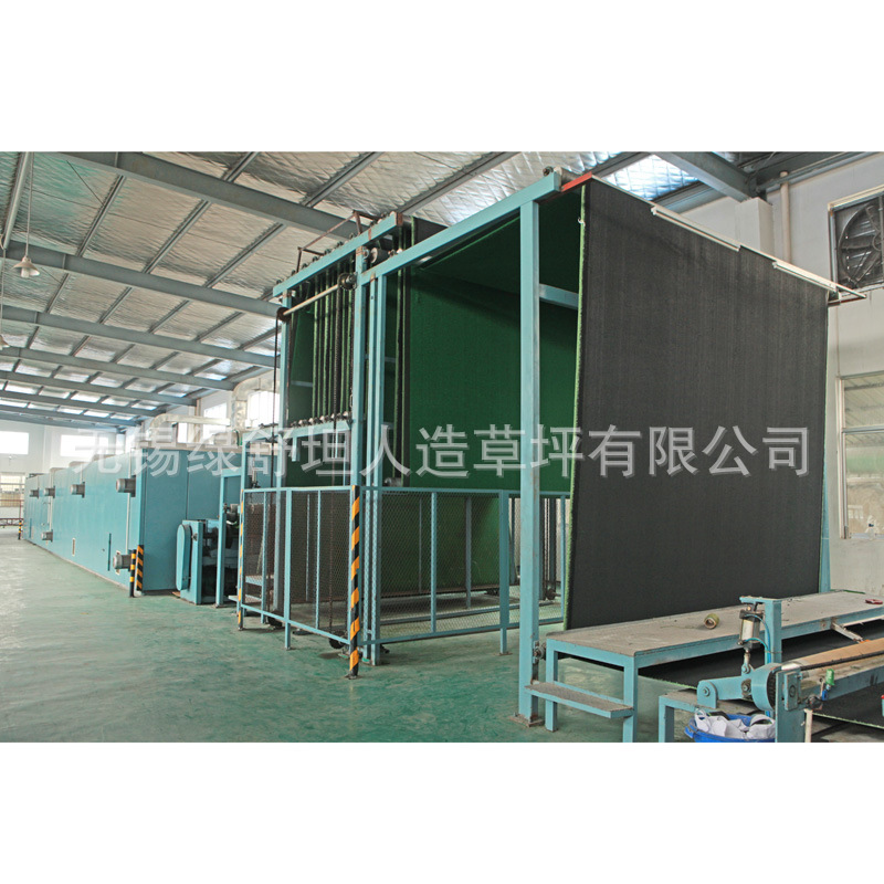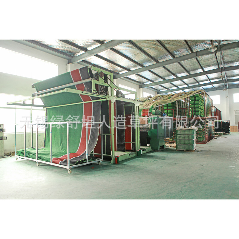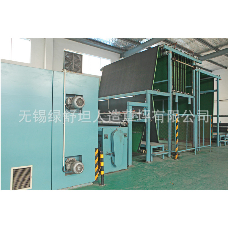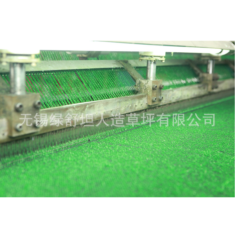 人造草坪即以仿草叶状的合成纤维,植入在机织的基布,背面涂上起固定作用的涂层以作运动场上、庭园地坪和绿化地面上。