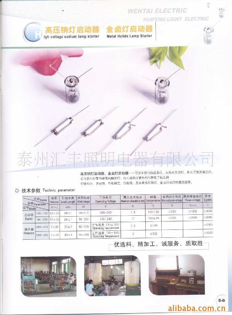 我公司是生产辉光启动器历史最早,产量最大,质量最好的专业公司。主要产品有荧光灯用启动器,节能灯启动器,金卤灯启动器,钠灯启动器。