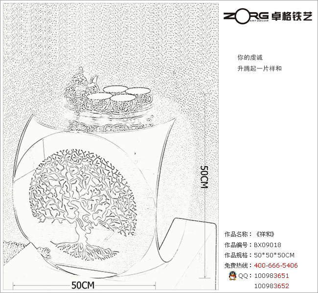 卓格铁艺1-BX09018号《祥和》酒店软装饰品金属工艺摆件