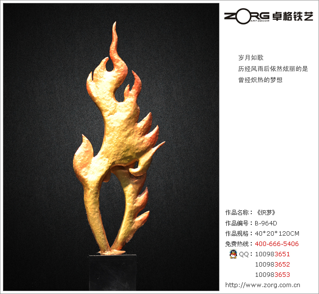 卓格铁艺1-B964号工艺品《炽梦》酒店软装饰金属工艺摆件