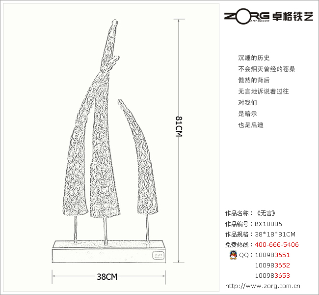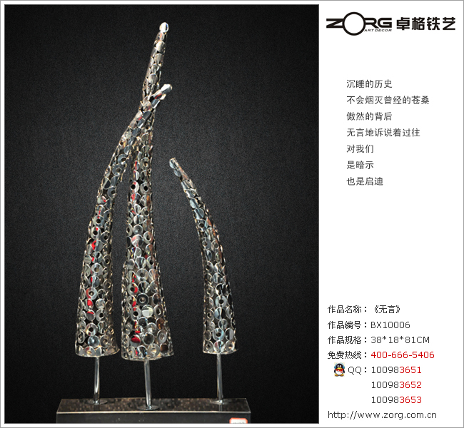 卓格铁艺1-BX10006号软装饰《无言》手工金属雕刻工艺品