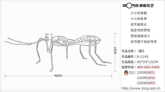 卓格铁艺1-B1149号工艺品《蚁》酒店软装饰品金属工艺摆件