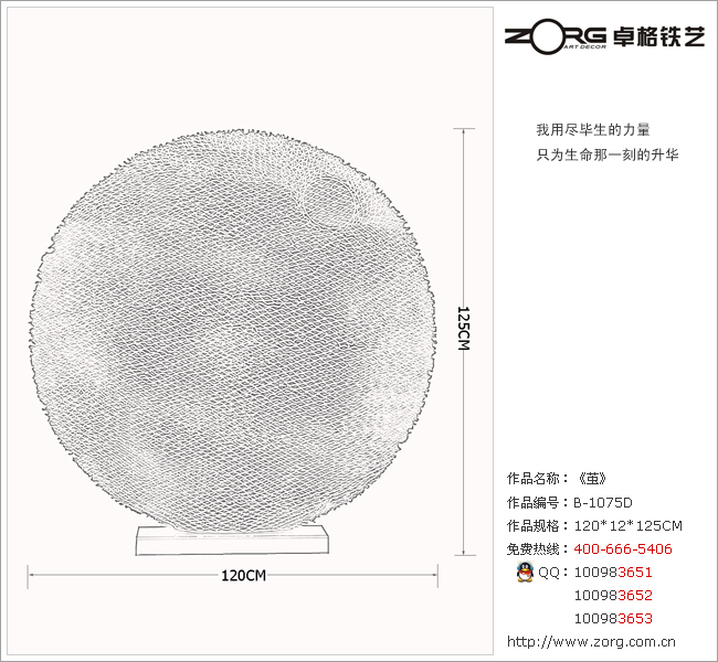 卓格铁艺1-BB1075D号软装饰《茧》手工铁艺金属球