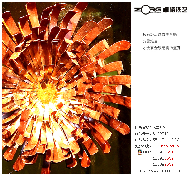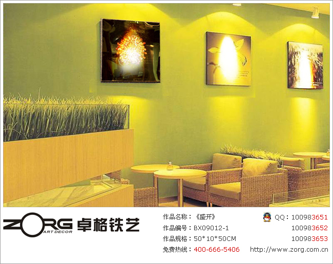 卓格铁艺1-BX09012-1号金属软装饰《品香》手工铁艺墙饰