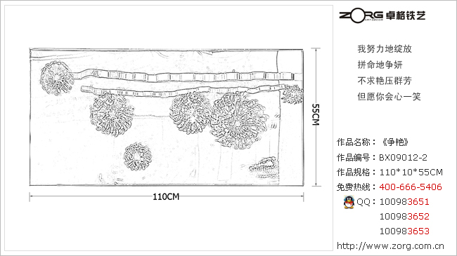 卓格铁艺1-BX09012-2号软装饰《品香》可定制手工金属墙饰