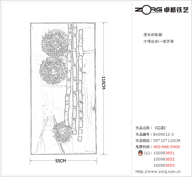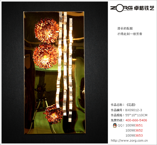卓格铁艺1-BX09012-3号软装饰《品香》可定制手工金属墙饰