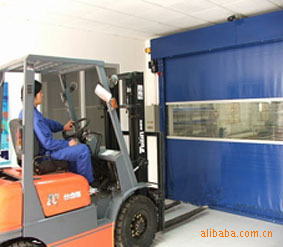 2、门帘布为特制高张力尼龙纤维布(法国进口)密度840丹,双面胶合厚度0、8-1、0mm,其有防火阻燃及抗紫外线功能。