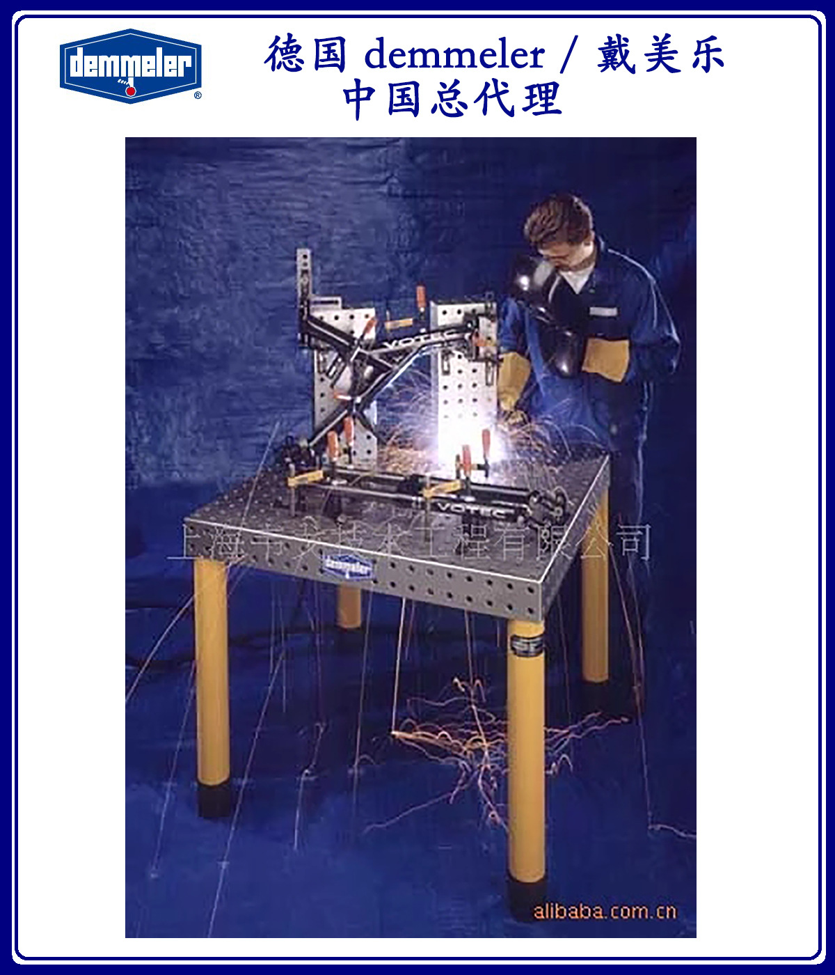 德国戴美乐(Demmeler)公司经过多年的研制,创造了一种新型的孔系夹紧系统---三维柔性组合夹具,用于焊接、机械加工和检测工件。三维柔性焊接组合夹具以带有网格孔和标尺的五个工作面的三维焊接工作台为基础,配备各种用于定位的标准模块,通过快速销栓连接,对于各种形状的工件进行快速、精确的装夹,保 证焊接或加工的工件达到很高的精度。三维柔性焊接工装夹具代替了传统的专用工装,使用户缩短大量的设计、制造时 间,并且可以反复使用,节约研制和生产成本。 三维柔性焊接组合夹具有2种系列:D28和D16。 D16系列主要用于薄板件、自行车摩托车制造、机器人焊接等。 可根据用户的需求定制不同规格的台面。
