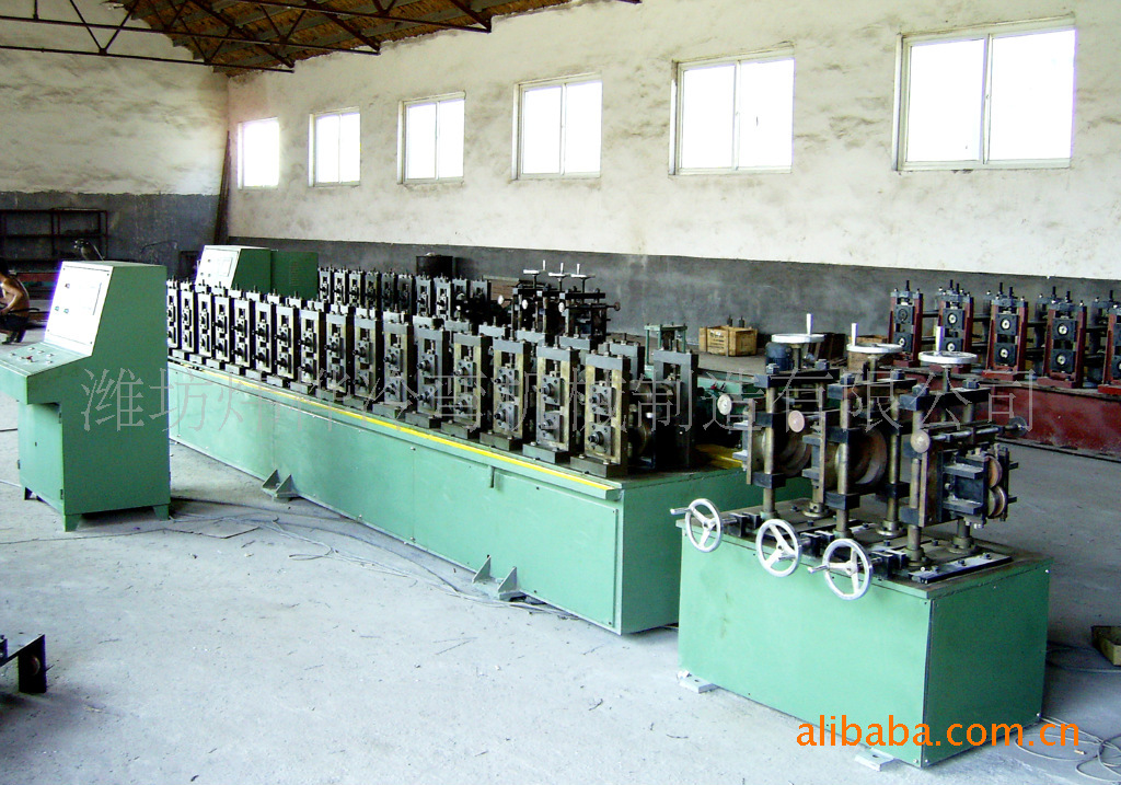 潍坊炜桦冷弯机械制造有限公司已与山东科技职业学院合作,是建设部金属结构协会会员单位,是集设备制造、模具加工、技术开发于一体的综合性机械制造私营企业。具有自营出口权资格.我公司拥有数名专业机械设计、轧辊设计人员,他们都曾经独立设计开发过冷弯成型机组、轧辊、各种冲模。 --我公司对新型材有很强的开发能力!-- 冷弯型钢成型机组是钢带、镀锌带、彩色钢板、铝带、不锈钢带等板材经过多道轧辊连续滚压变形,轧制出各种形状及各种不同尺寸的冷弯异型钢材的专用设备。 机组由:开卷机、主机、主传动部分、校直部分、锯切部分、冷却部分、电控部分组成。具有自动定尺切断、自动化生产的优点。根据实际情况锯切部分分锯切和液压冲裁。也可根据客户的要求设计制造特殊要求的成型机组。 本公司的宗旨:精良的产品质量、优惠的价格、完善的售后服务。 经理高明年希望与全国新老朋友真诚合作、共创佳业!