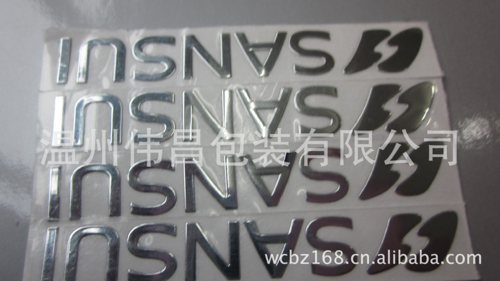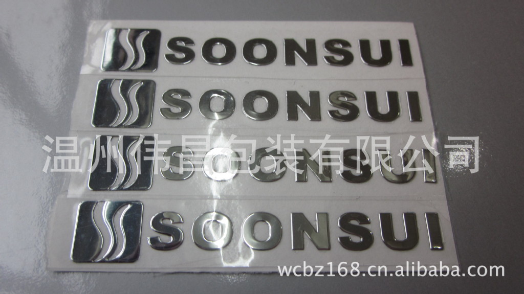 金属分体标说明:电铸超薄金属标贴,也叫电铸超薄字,又称金属标贴,电铸商标,电铸金属标贴,可用于商品商标,可用镍片和铜片容解而成。通常做成镜子反光色,和金黄的铜色,当然也可以做成其它颜色。每个字可连可分,每个笔画也可以分开,新型的一种商标。字的下面有胶,表面有保护膜,用的时候全部可以贴在一张保护膜上,然后直接可以全部粘到指定的物体上。