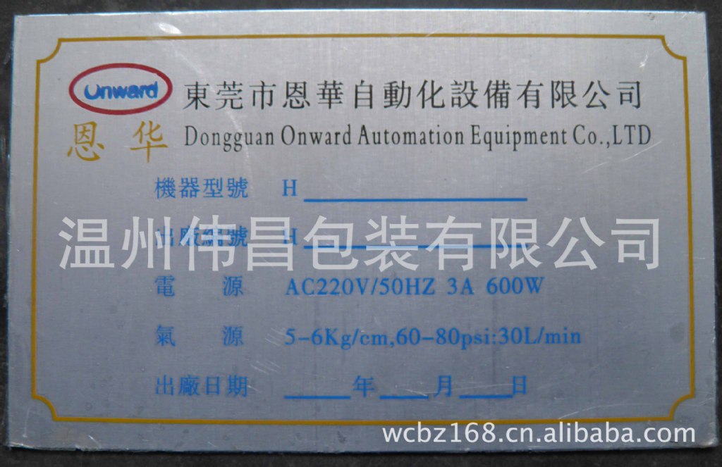 加工品类: 腐蚀铭牌 机械铭牌 电器铭牌