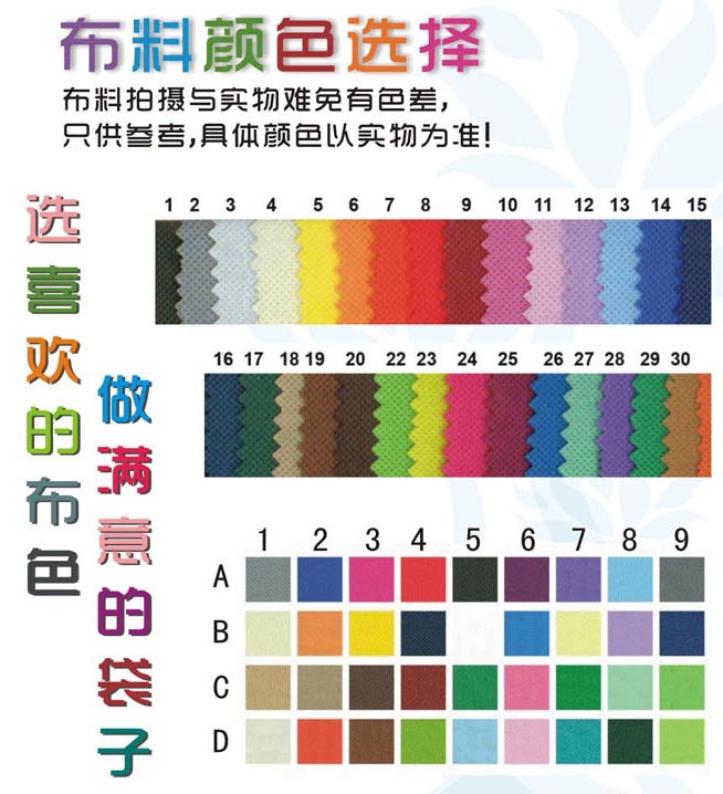 材料:无纺布克重在40g-120g,颜色有几十种任你选择;