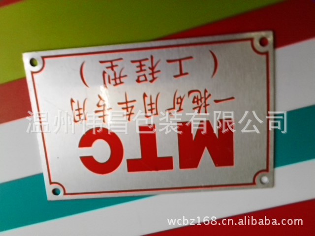 加工品类:金属商标牌,高光铝牌,反光铝牌,夜光铝牌、亚克力标牌和塑料标牌