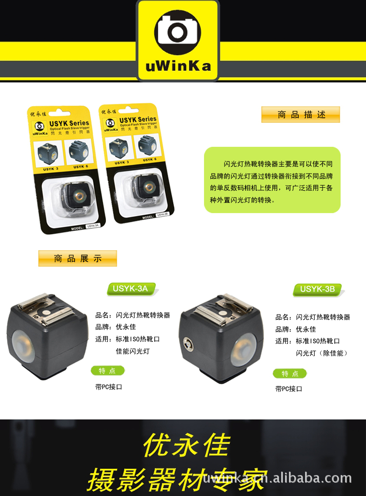 在拍摄照片的时候,照相机上闪光指数往往不够,而且照相机上又不能放闪光灯,怎么办呢?优永佳闪光灯引闪器就可以帮您解决这个问题,只要有一个闪光灯插进引闪器,放在任何地方,都能和照相机上的闪光灯同时闪光,起到很好的拍摄效果。