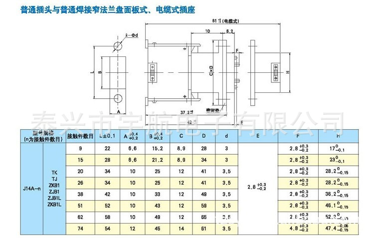 J14A、C、D、G、M、P系列 双保险锁紧机构,是矩形电连接器中兼顾操作快捷、使用可靠的连接锁紧形式。端接形式为焊接,J14P采用为非金属化外壳,J14M为低磁型。郑州航天电子J14A矩形印制板航空插头执行Q/HD20037-2007详细规范,属于仪器式电连接器,具有体积小、密度高、双保险锁紧等特点,其锁紧机构连接锁紧无需动作空间,可靠性高。该产品的端接形式为焊接,广泛应用于航天、航空、兵器、舰船、通讯、计算机等行业的设备仪器舱内部电信号连接.