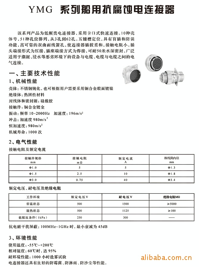 YMG系列船用抗腐蚀电连接器