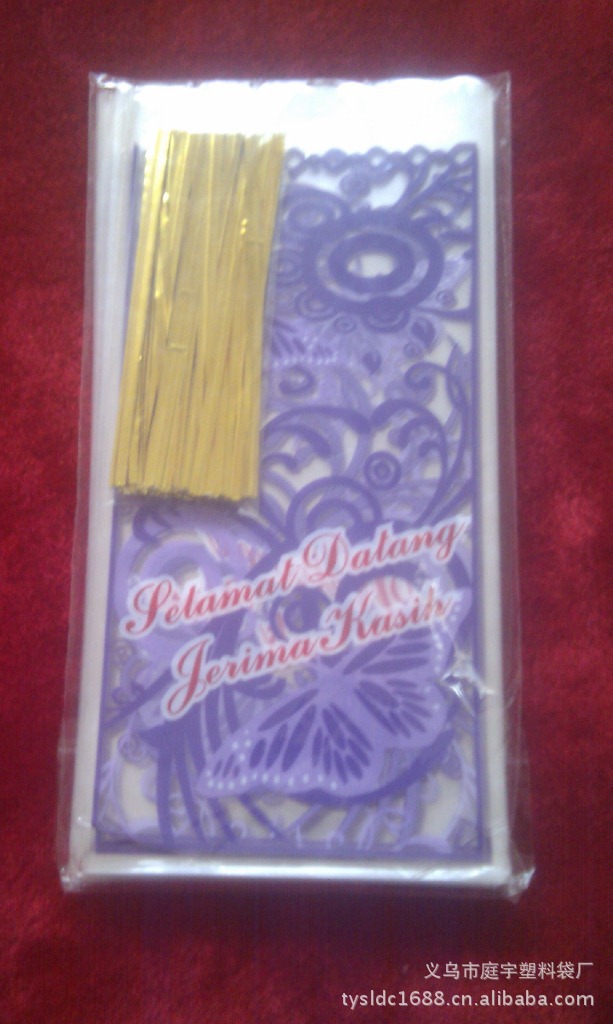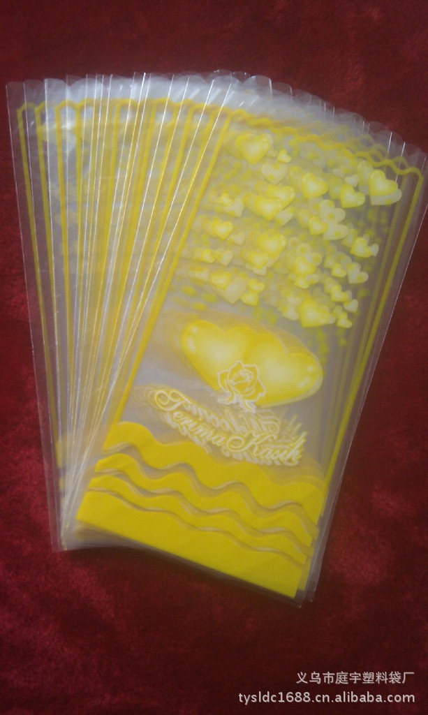2)优点:OPP袋具有透明度高、保护商品防日晒、防雨淋、防灰尘等众多优点。OPP袋由OPP膜对折后侧面封边并在开口舌头处粘有自粘封条,使用时装入产品撕去封条表面的保护皮后将舌头对折后粘牢即可,使用方便、美观大方。还可根据客户需要印刷各种图案及打蝴蝶孔、飞机孔。