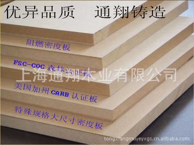 产品质量:外销符合欧洲中密度纤维板标准EN 622-5:1997;内销符合中华人民共和国中密度纤维板国家标准GB/T 11718-1999