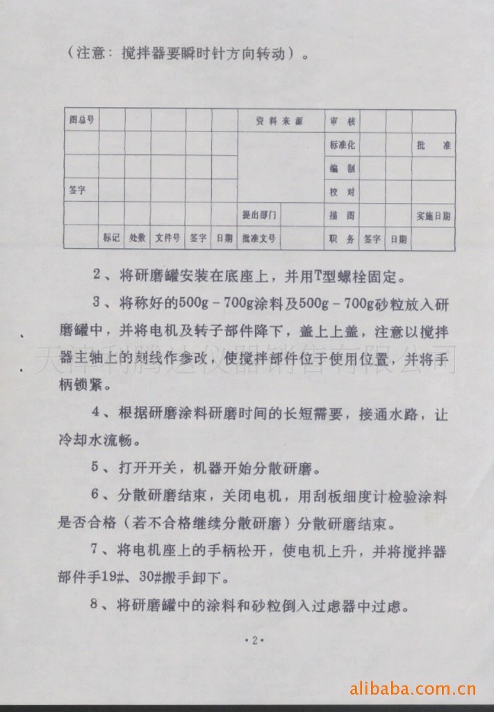 技术参数: 搅拌器转速1400r/min研磨罐尺寸:100×200mm容积;1.5L磨料:直径2-4.5mm钢化玻璃球电源:380V 50HZ应用性能:磨料:500-700g 试料:500-700g试料经研磨分散后细度可达25μm以下详细介绍: 用途:用于实验室内涂料填加料的粉碎研磨工作原理:利用研磨与试料在罐内急速旋转。翻动产生强烈的拉剪和冲击,以达到试料的研磨、分散
