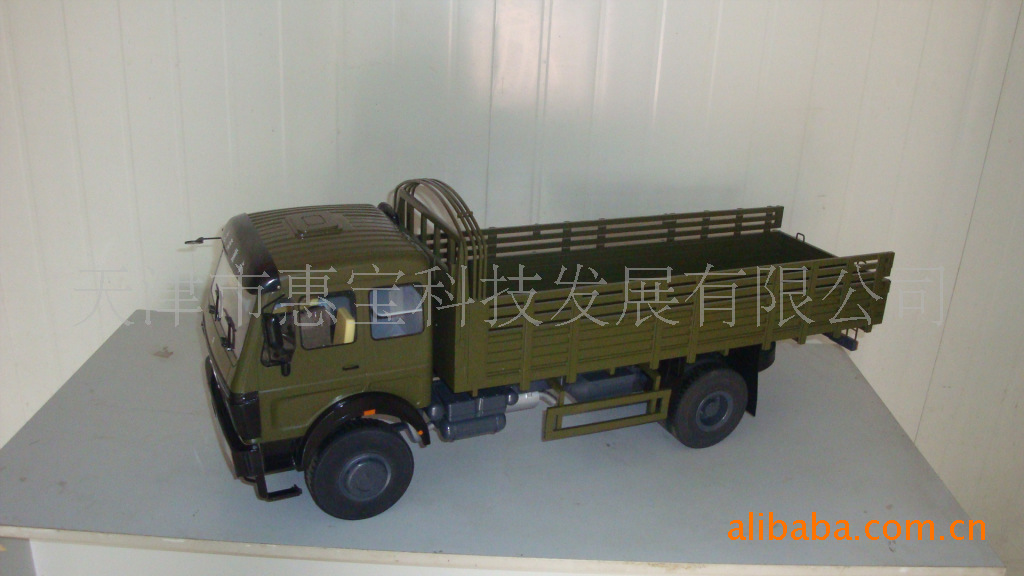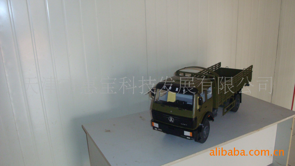 此模型是维和部队的车辆模型,加工比例:1:10,模型尺寸:95*30*56CM;材质:轮胎用橡胶加工,底盘和车箱用金属材料加工;驾驶室用非金属材料。公司设计、加工的动、静态模型,仿真度高,设计结构合理,维护原始设计风格,价格合理,服务周到!