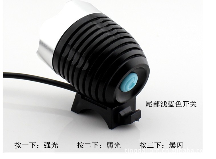 【开关】按键开关,按一下:强光、按二下:弱光、按三下:爆闪