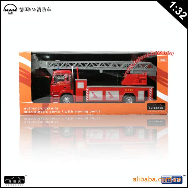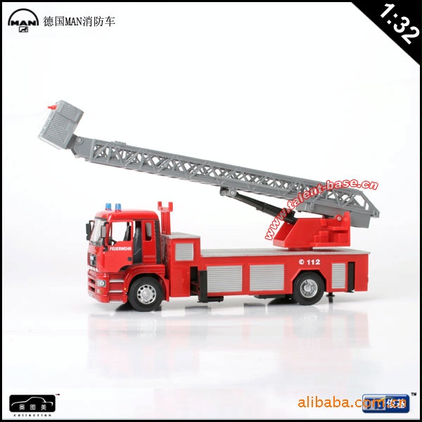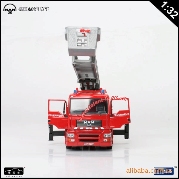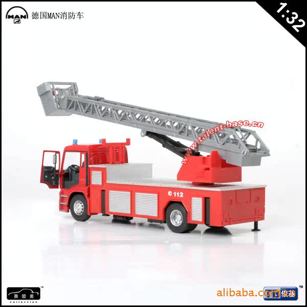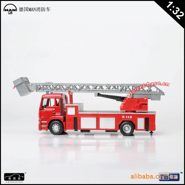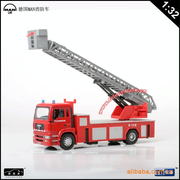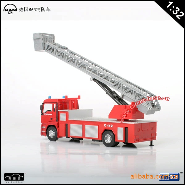 【模型功能】前后六轮可转+车门可开+设有四个可推拉千斤鼎+云梯可伸缩并能360度旋转