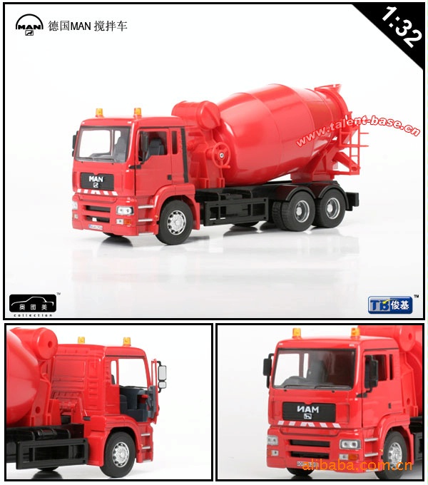 【模型功能】前后10轮可转+车门可开+旋转手柄可控制搅拌筒转动