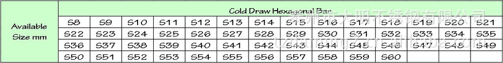 不锈钢六角棒规格表
